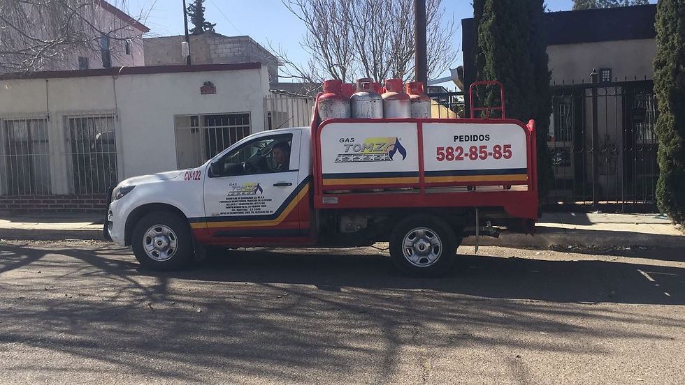 La primera camioneta expendedora detenida, fue localizada en las calles Octava y Sonora, de la colonia República, era de la marca TOMZA; le fue solicitado al distribuidor que bajara 5 tanques, tres de 45 kilogramos y dos de 30 kilogramos.