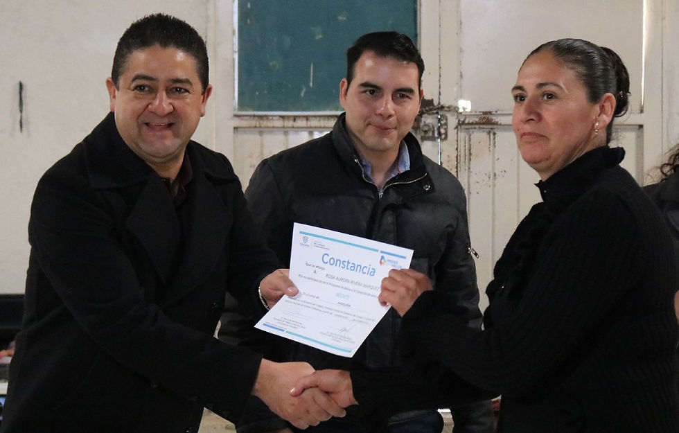 En presencia del Lic. Carlos Chaparro Gómez, presidente seccional del ayuntamiento, la Lic. Silvia Moreno, presidenta del DIF seccional de la localidad, y el Lic. Miguel Andrew, encargado de capacitación para el autoempleo, se otorgó a las y los beneficiarios una constancia y uncheque con el pago de su beca.