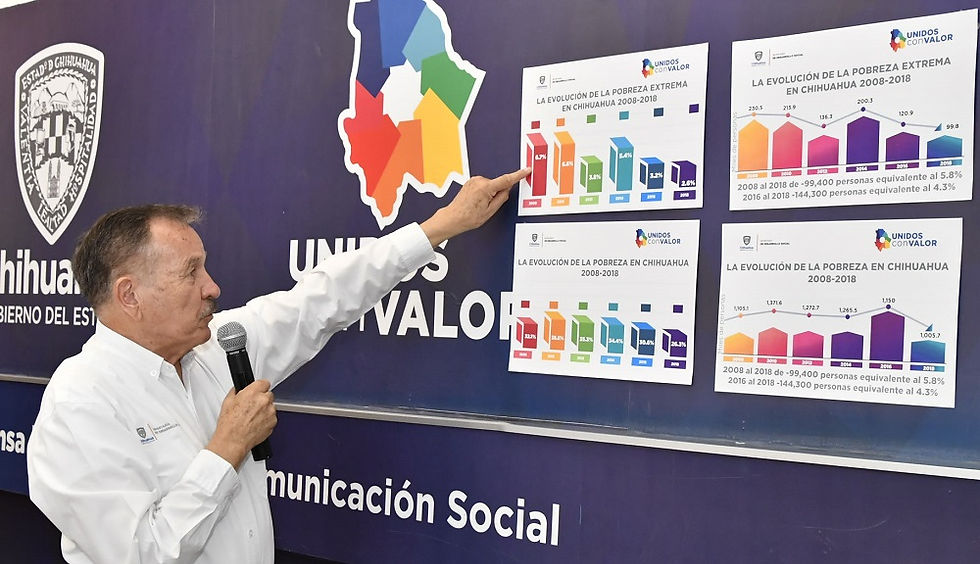 El funcionario detalló que en números absolutos, la mayor cantidad de personas en situación de pobreza se ubican en Ciudad Juárez, Chihuahua, Cuauhtémoc, Guachochi, Guadalupe y Calvo e Hidalgo del Parral.